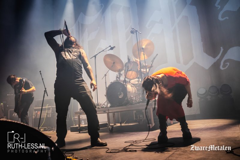 Gavran schudt de boel vandaag even wakker met hun repetitieve sludge/doom, waarbij er veel ruimte is voor cleane zang. Die klinkt her en der nog wel wat wankel, maar echt storen doet het niet, het past zelfs bij de sfeer van de muziek. Minder kapot ben ik van de bak effecten op de krijs, tijdens die momenten dwaalt mijn aandacht liever af naar de visuele beelden op de achtergrond die voornamelijk bestaan uit weide landschapsfoto’s. Die sluiten mooi aan bij de melancholische ondertoon die dit Rotterdamse viertal in zijn geluid legt.