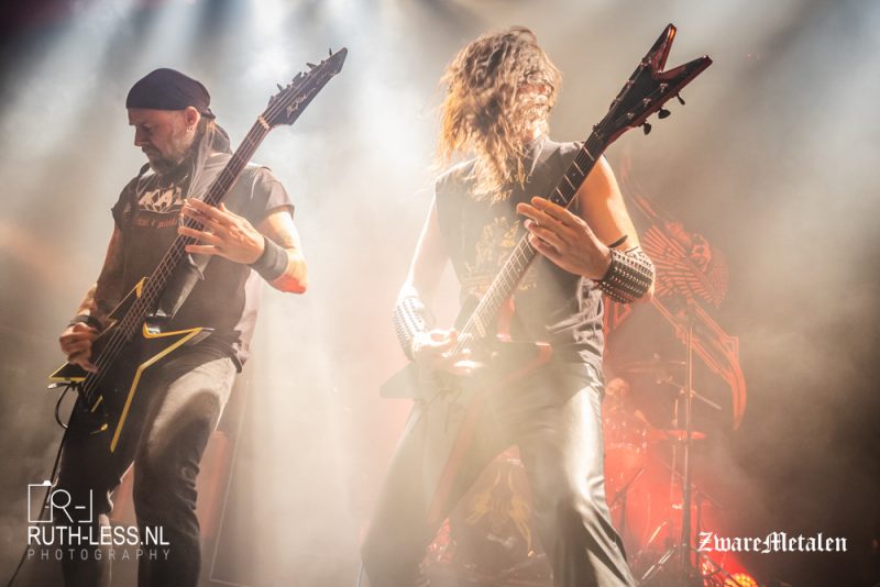 Toch ben ik niet helemaal kapot van het stemgeluid van zanger Chris. In dat opzicht is het fijn dat de band ook een zangeres heeft in de vorm van Lane Shi Otayonii. Pas na drie nummers krijg je iets mee van haar vocalen, en die zijn een fraaie tegenhanger. Het merendeel van de tijd is zij aan het bewegen, maar wanneer ze zingt maakt meteen indruk. Het geeft meer diepte en gevoel aan deze show, want naast het pompen en beuken zet de band bij vlagen ook in op sfeergordijnen ondersteund door de riffs. De muziek weet niet continu te boeien, maar het maakt wel enige indruk.