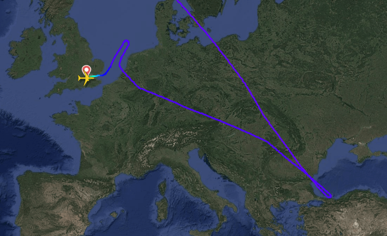 Boven Zuidoost-Europa maakte een Boeing 777-200 van Air Canada een ommekeer om een ongeplande landing op Londen Heathrow te maken.