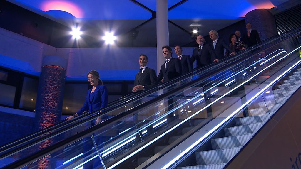 Lijsttrekkers van negen grootste partijen komen met roltrap naar beneden