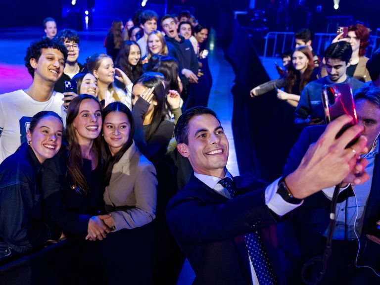 D66-lijsttrekker Rob Jetten (38) groeide op in een katholiek gezin in Noord-Brabant. Hij maakte snel carrière in de politiek: hij was voorzitter van de Jonge Democraten en daarna raadslid in Nijmegen. In 2017 werd hij Kamerlid en kort daarna, op 31-jarige leeftijd, fractievoorzitter. Hij was minister voor Klimaat en Energie in het laatste kabinet Rutte en in 2023 werd hij partijleider. Het beeld van ‘klimaatdrammer’ is hij kwijt. Hij straalt in deze campagne vooral optimisme en een wil om samen te werken uit. Jetten werd vorige week derde bij De Slimste Mens.