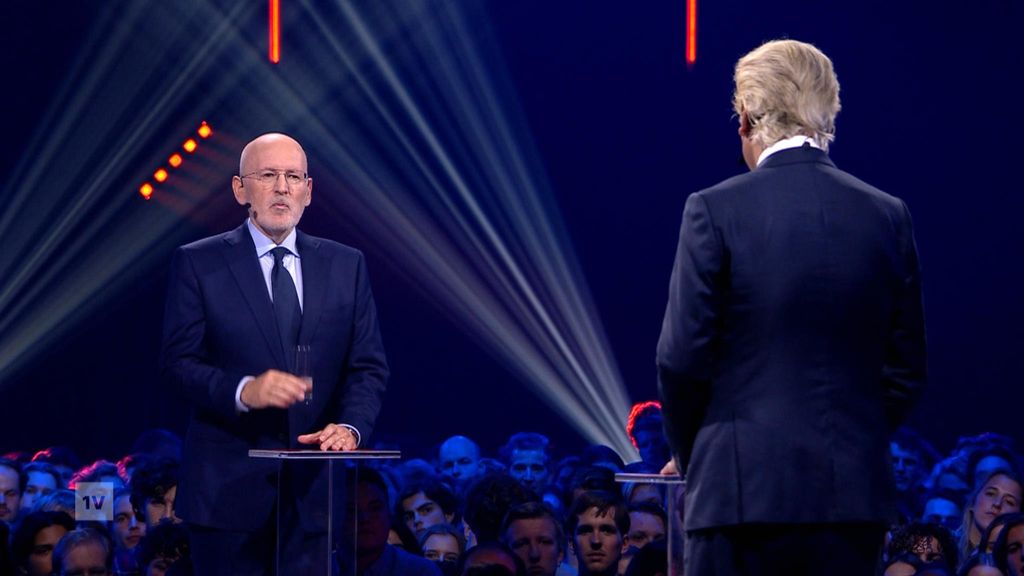 “Het debat begint respectvol, op rustige toon. Er worden wel stootjes uitgedeeld, maar niet op felle toon. Zo benadrukt Timmermans dat er boeren moeten worden uitgekocht en dat de stikstofaanpak van BBB niets oplost en dat de VVD alles duurder maakt. Yesilgöz verwijt Timmermans voor teveel regels te zorgen. Van der Plas van BBB komt er lastiger tussen in dit debat, ze zegt dat woonminister Keijzer van haar partij al aan de slag is met de woningcrisis. Een rustige aftrap van het debat.”