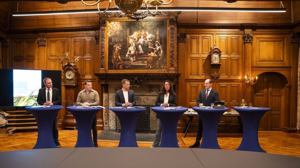 RTV NoordKarin Dekker (tweede van rechts) met de rest van het provinciebestuur, Susan Top was afwezig
