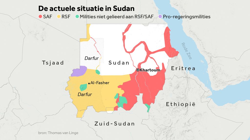 “De verovering van Al-Fasher is heel belangrijk voor de RSF”, zegt Baldo. Doordat ze nu nagenoeg de hele regio in handen hebben, hebben ze toegang tot de grens met buurlanden als Egypte en Libië. “Dat is strategisch interessant, want daardoor wordt de handel in onder meer goud en vee makkelijker.”