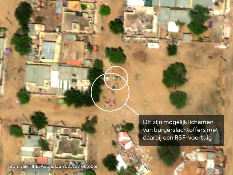 NOSOp satellietbeelden van een wijk in de Sudanese stad El-Fasher zouden burgerslachtoffers en RSF-voertuigen te zien zijn