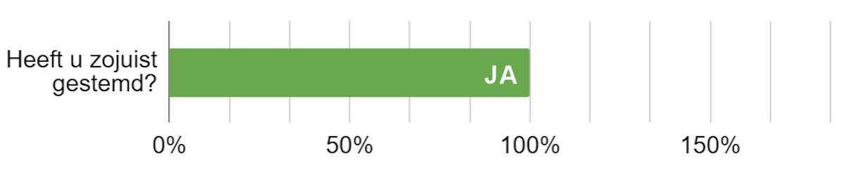 Voor de exitpoll werden dertigduizend Nederlanders bij de uitgang van het stemlokaal gevraagd naar hun stemgedrag. Op de vraag ‘Heeft u zojuist gestemd?’ antwoordde maar liefst 100 procent van de ondervraagden ‘ja’.