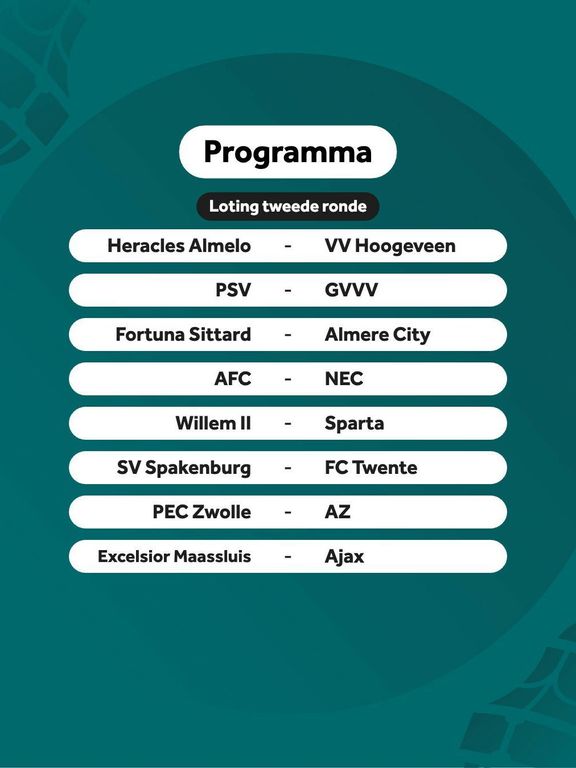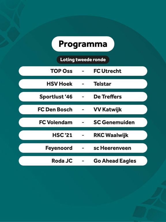 NOSDe duels in de tweede ronde van de KNVB-beker