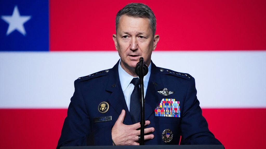 AFPDan Caine sprak vorige maand bij de uitzonderlijke militaire vergadering op de marinebasis in Quantico, Virginia