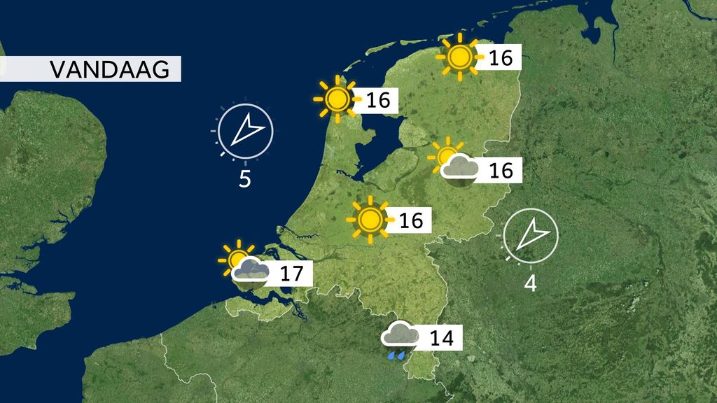 Eerst het weer: de meeste zon vandaag in het noorden. Verder naar het zuiden meer bewolking en in Limburg valt er regen. Het is 16 graden. In de regen in Limburg blijft het frisser.