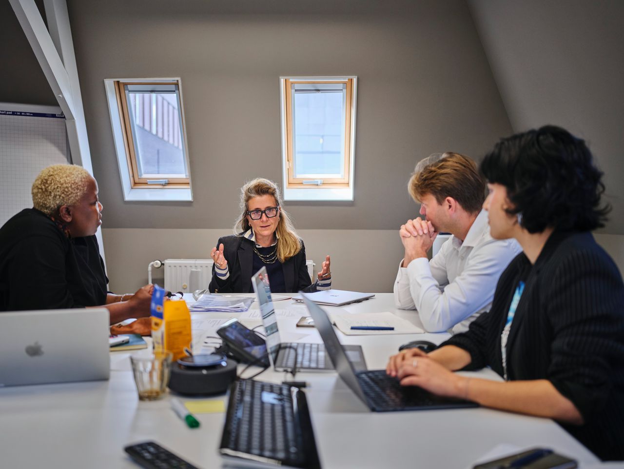 Defne Ayas, directeur van het Van Abbemuseum, vergadert met de curatoren.