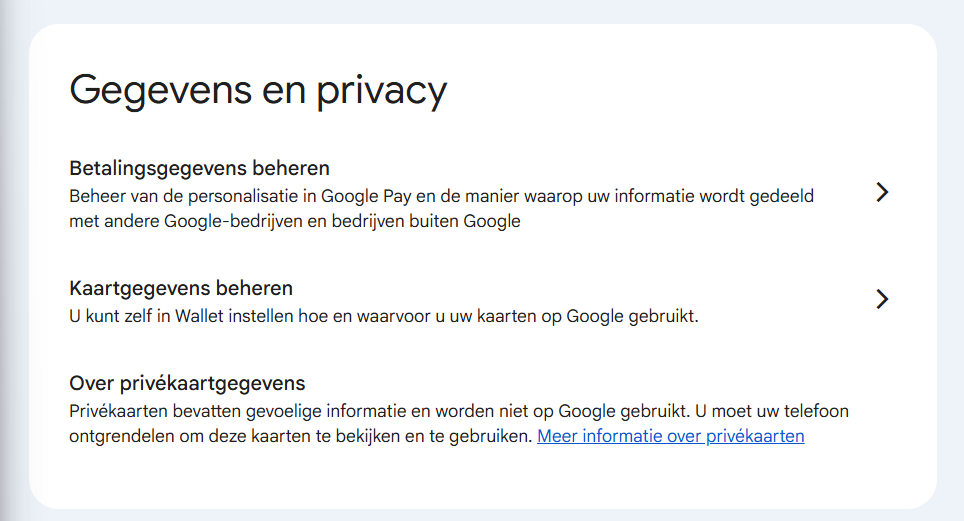 • Ga onder Gegevens en Privacy naar Betalingsgegevens beheren