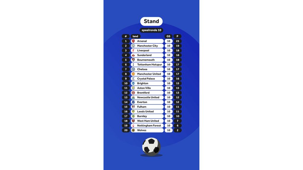 De promovendus uit het noorden van Engeland had over Manchester City, Liverpool, Bournemouth, Tottenham Hotspur en Chelsea heen kunnen springen, maar blijft op 18 punten steken. Arsenal is de ongenaakbare koploper in de competitie met 25 punten. City volgt met 19 punten.