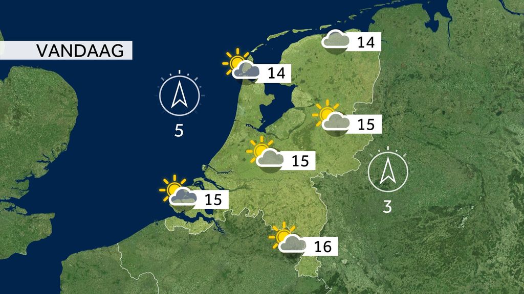 Eerst het weer: het is overwegend droog en het wordt geleidelijk zonniger. Het wordt 14 tot 16 graden bij een matige tot vrij krachtige zuiden- of zuidwestenwind.