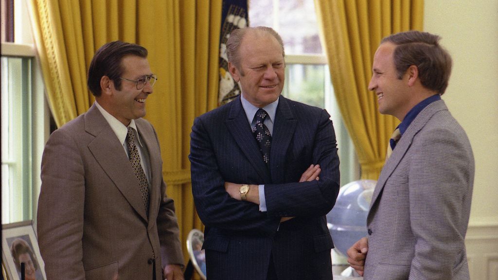Hoewel Rumsfeld en Cheney beiden onder Nixon op het Witte Huis werkten, waren ze niet betrokken bij het Watergate-schandaal begin jaren 70. Hun macht nam flink toe onder Nixons opvolger Ford. Toen Rumsfeld onder hem minister van Defensie werd, nam Cheney Rumsfelds baan als stafchef van het Witte Huis over. Hij was de jongste die ooit op die post diende.