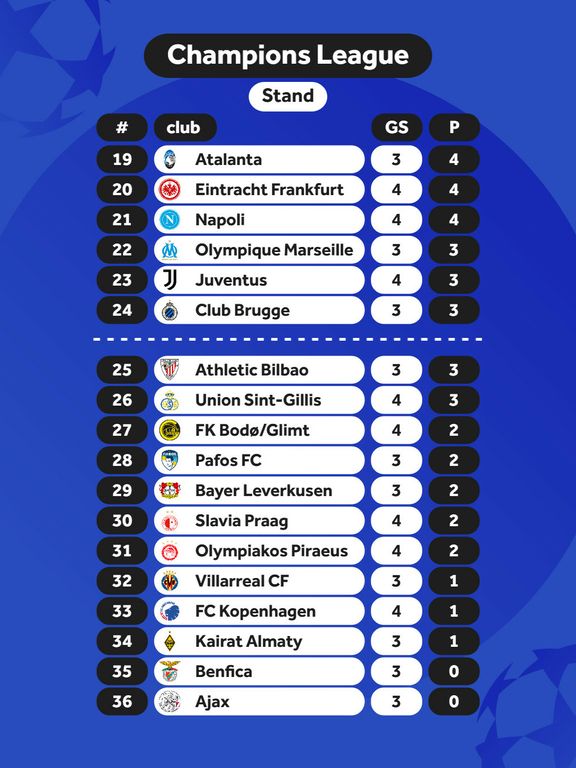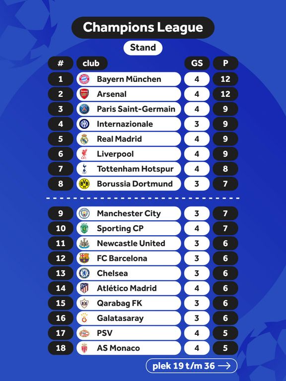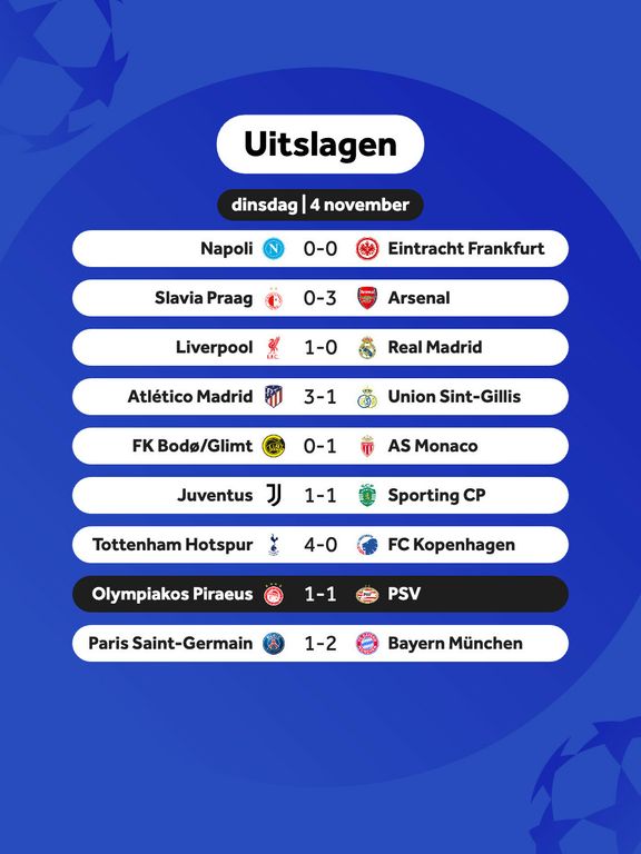 NOSDe stand in de Champions League op dinsdagavond 4 november