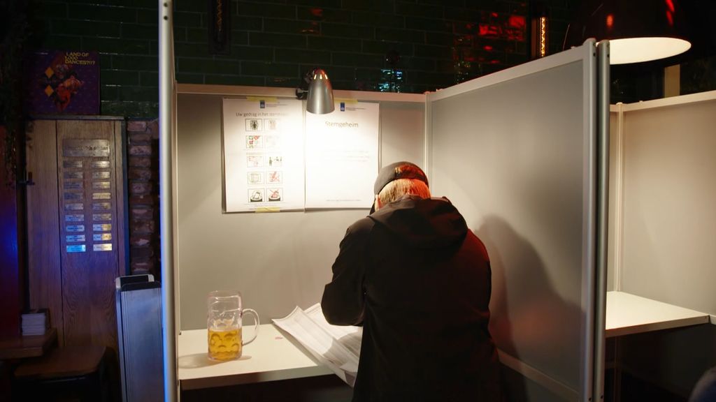 NOSIn Zwolle kon deze kiezer woensdagnacht met een pul bier het stemhokje in