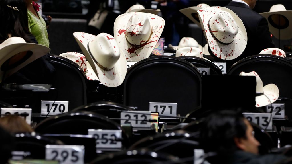 ShutterstockVolksvertegenwoordigers hebben uit protest bebloede hoeden op hun zetels geplaatst