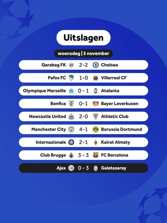 NOSDe uitslagen in de Champions League van woensdag 5 november