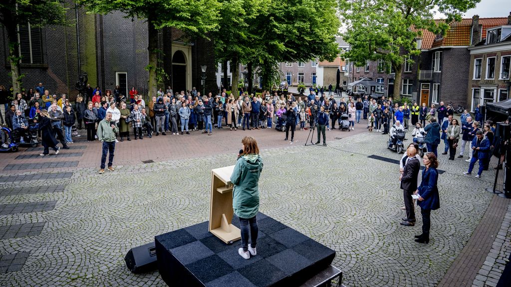 ANPBuurtbewoners en belangstellenden tonen hun medeleven tijdens een bijeenkomst bij het stadhuis in Vlaardingen, mei 2024