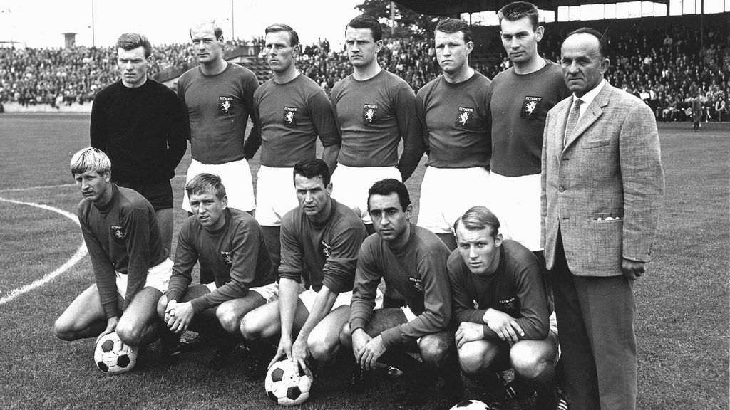 ANPDe selectie van FC Twente in 1965 met knielend tweede van links Egbert ter Mors.