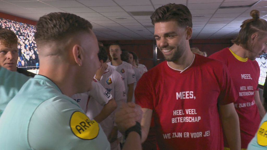Voor de wedstrijd staken de spelers van FC Twente ploeggenoot Mees Hilgers een hart onder de riem: ze betraden het veld in rode shirts met het rugnummer 2 en een beterschapswens op de voorkant.