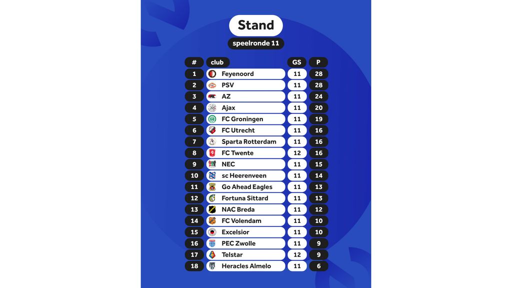 NOSDe stand in de eredivisie