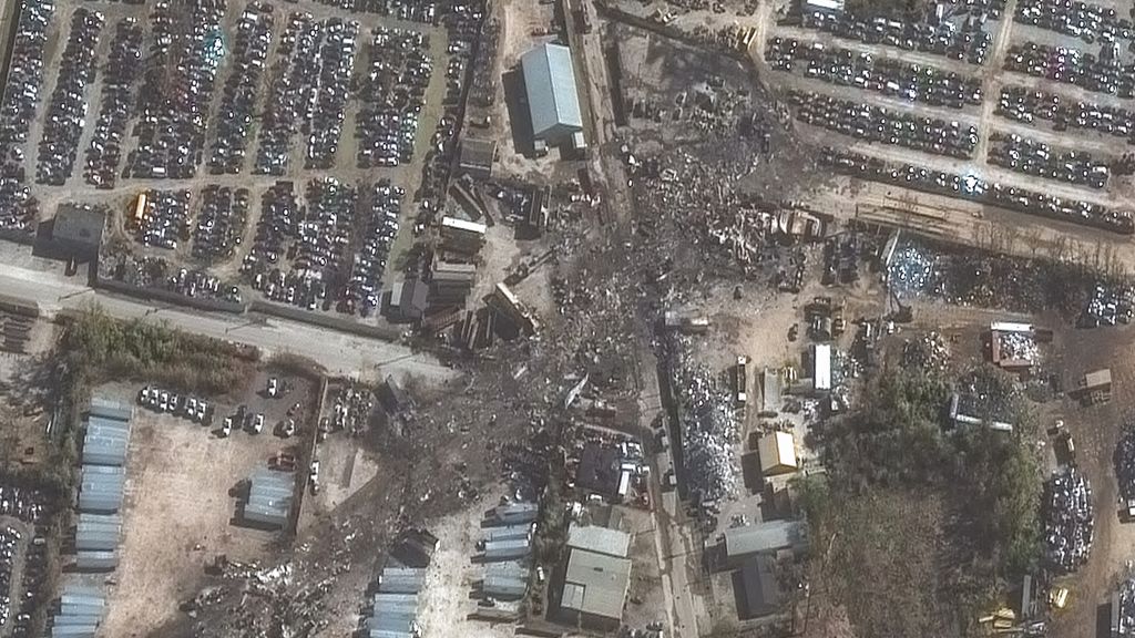 AFPHet puin na de crash nabij de luchthaven van Louisville
