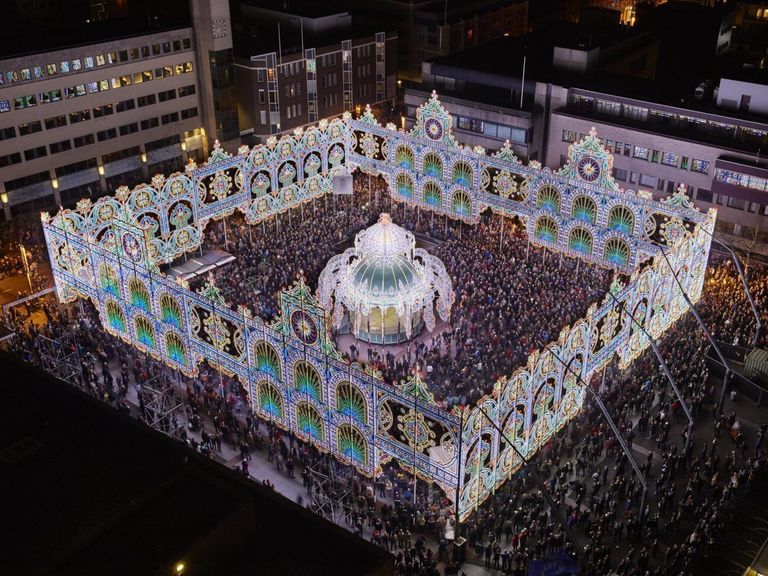 Gevraagd naar zijn favoriet, noemt directeur Rademakers een ander project. Dit jaar is een verkleinde versie te zien van Connecting the Dots uit 2020. “Dat was een coronajaar, niemand mocht de straat op. We hebben toen op eigen houtje drie dagen en nachten lang de hele stad blauw verlicht. Pas na een tijdje hadden mensen door: ‘dat zal GLOW wel zijn’.”