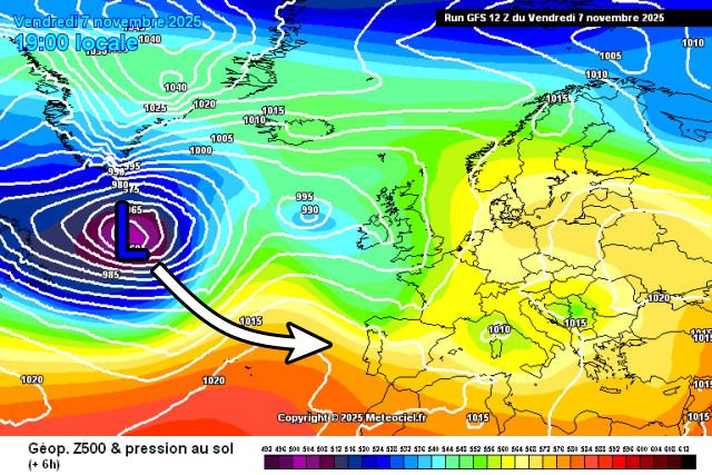 Het lagedrukgebied onder Groenland zal richting Portugal migreren.