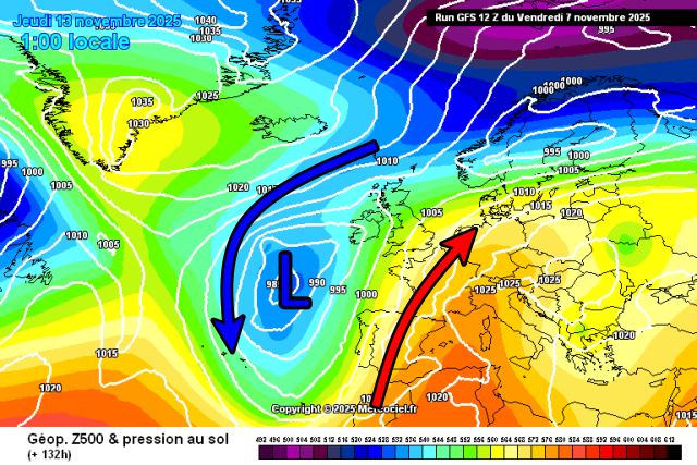 Een blik op de weerkaarten kan ons meer vertellen over de oorzaak van deze hoge temperaturen. Momenteel bevindt er zich een lagedrukgebied ten zuiden van Groenland op de Atlantische Oceaan. De komende dagen zal deze depressie de oceaan oversteken en zuidelijk zakken. Tegelijk neemt de hogedruk boven het Europees vasteland toe waardoor het lagedrukgebied zich voor de kust van Portugal zal stationeren.