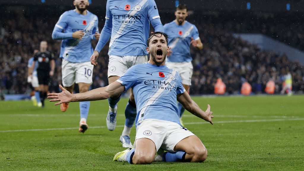 ReutersNico Gonzalez viert de 2-0 van Manchester City tegen Liverpool.
