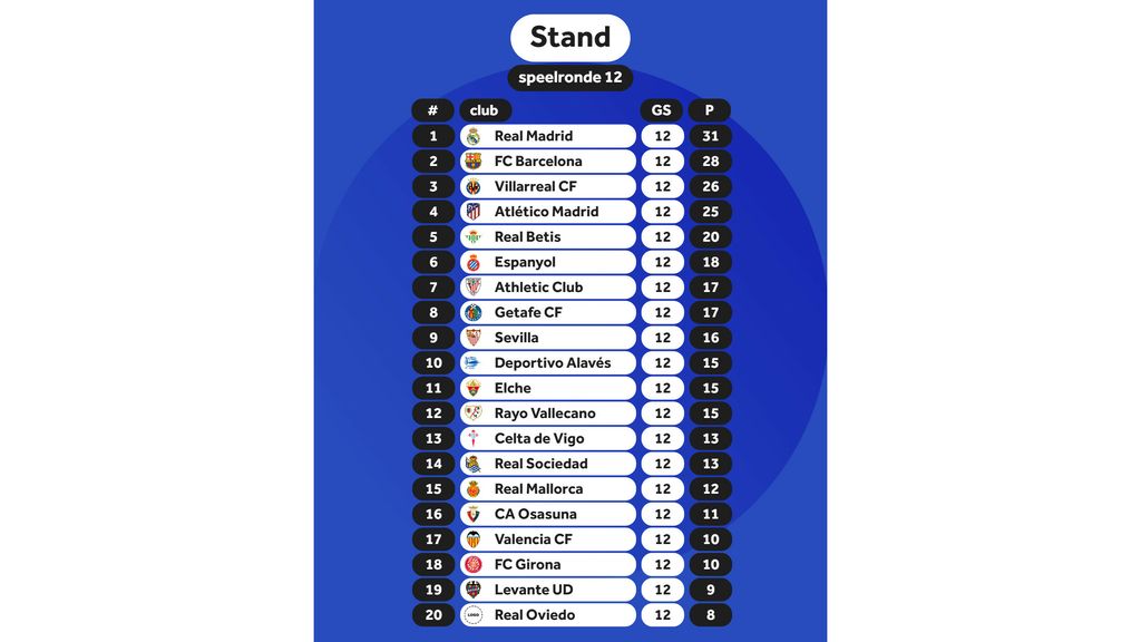 Eerder op de dag kwam Real Madrid niet verder dan 0-0 bij stadgenoot Rayo Vallecano. De links geëngageerde club uit de Madrileense wijk Vallecas is onder trainer Iñigo Pérez niet meer het lelijke eendje van de Spaanse hoofdstad.