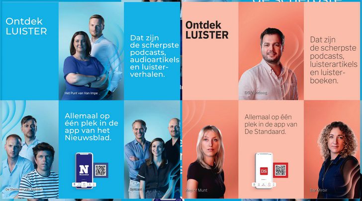 Mediahuis bundelt al zijn (niet-lineair) audio-aanbod voortaan onder één naam: LUISTER. Podcasts, audio-artikels, luisterverhalen en exclusieve reeksen van Het Nieuwsblad, De Standaard, Het Belang van Limburg en Gazet van Antwerpen zijn nu te vinden in één herkenbare omgeving binnen elke app. De brede lancering gebeurt met een campagne via tv, radio, sociale media, buitenreclame en – voor het eerst in Vlaanderen – via zogenaamde OOH-soundshowers op drie Vlaamse locaties. Waar die drie locaties zich bevinden is – wellicht om veiligheidsredenen – niet bekendgemaakt. Mediahuis produceert maandelijks ruim 120 nieuwe afleveringen van podcasts. Het claimt een bereik van ruim 2 miljoen luisteraars, maar dat is uiteraard een puur theoretisch maximaal cijfer. Want het blijft opmerkelijk dat Mediahuis nog steeds niet deelneemt aan de maandelijkse podcastmeting CIM Audio On Demand.