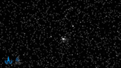 3I/ATLAS gefotografeerd door de High-Resolution Imaging Camera (HiRIC) van China’s Tianwen 1 orbiter, eveneens op 3 oktober 2025, vanuit een baan rond Mars. De afstand bedroeg alhier circa 29 miljoen kilometer. Foto/animatie: CNSA