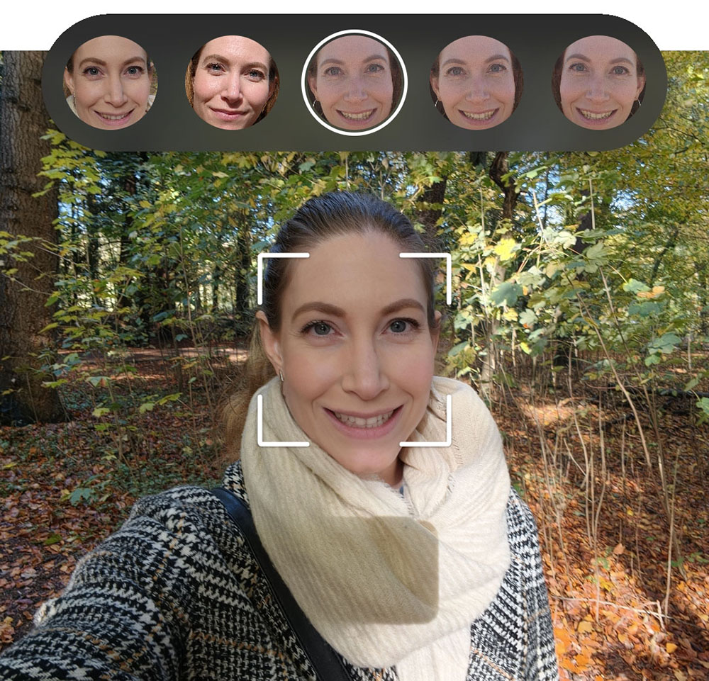 Vind je de gezichten in je portretten net wat te donker? Of zijn er harde schaduwen die je eigenlijk wilt verzachten? Met deze functie is dat in een handomdraai gedaan! Bij het activeren van deze functie scant de telefoon het beeld en gaat op zoek naar mensen. Daarna berekent hij de beste belichting voor deze personen, en met behulp van een slider kun je deze belichting versterken of afzwakken.