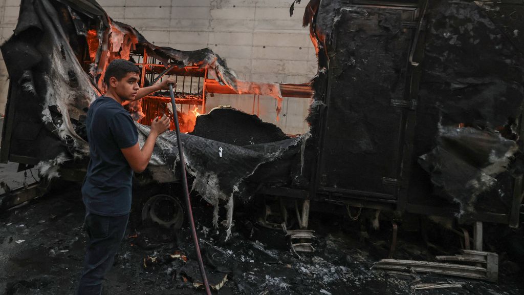 AFPEen Palestijnse man probeert een brandende vrachtwagen te blussen in het dorp Beit Lid