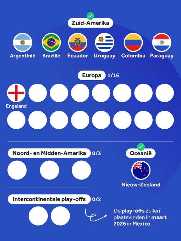 De kwalificatiecyclus voor het WK voetbal van 2026 nadert zijn ontknoping. 28 landen zijn al zeker van deelname, maar daar moeten er nog 20 bijkomen. Komende week is voor veel landen cruciaal.