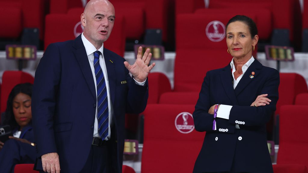 Getty ImagesFIFA-preses Gianni Infantino met KNVB-directeur Marianne van Leeuwen