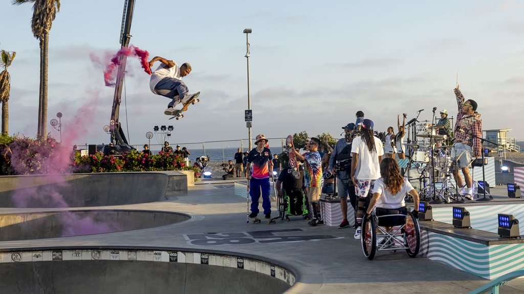 Getty ImagesBij de sluiting van de Paralympische Spelen in Parijs werd het stokje symbolisch overgedragen op Venice Beach