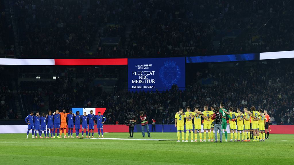 ReutersHet moment van stilte voor de wedstrijd tussen Frankrijk en Oekraïne