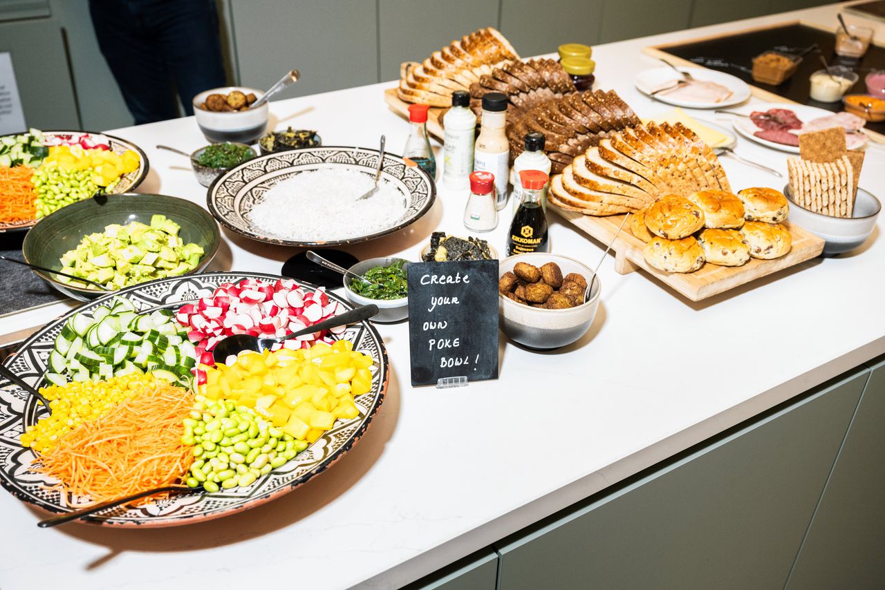 Op een vier meter lang mintgroen kookeiland staat de lunch klaar. ‘Ohpeneers’ verzamelen zich stilletjes rond de dertien verschillende pastelkleurige bakjes met toppings voor de poké bowl. Naast de avocado, zeewiersalade en gepelde edamameboontjes is er ook een uitgebreide brood- en belegafdeling. Voor iedereen staat een vers gember-appelshotje klaar. „Eh Claire, waar is de zalm?”, wil Sjoerd weten. Claire is vergeten de vis uit de koeling te halen. „Niet dat ik verwend ben of zo hoor, maar ik wist gewoon dat er zalm was en ik zag het niet staan”, zegt Sjoerd.