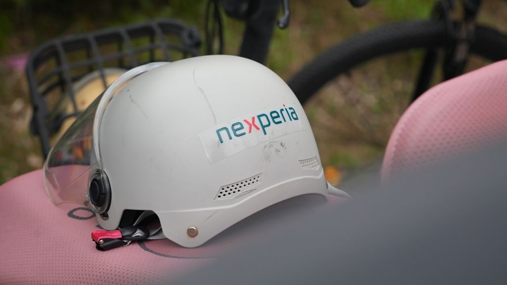 Yorben den HartogEen helm van een Nexperia-medewerker bij de Nexperia-fabriek in Dongguan