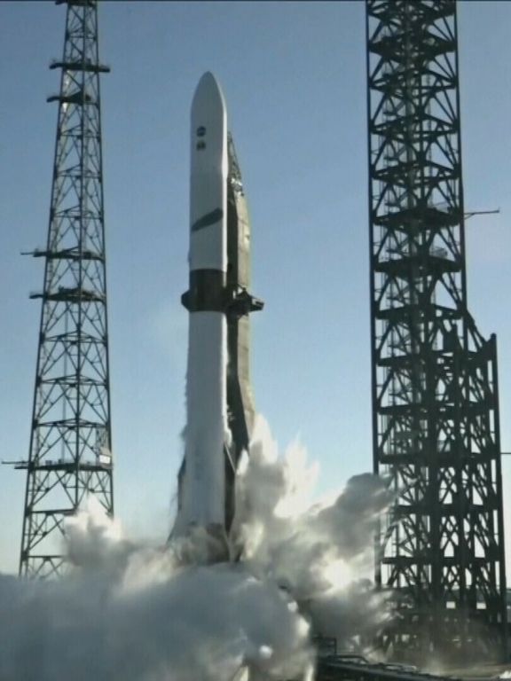 De 98 meter hoge raket heeft twee satellieten aan boord die naar de planeet Mars gaan. Het is de bedoeling dat ze 3D-beelden gaan maken voor onderzoekers.