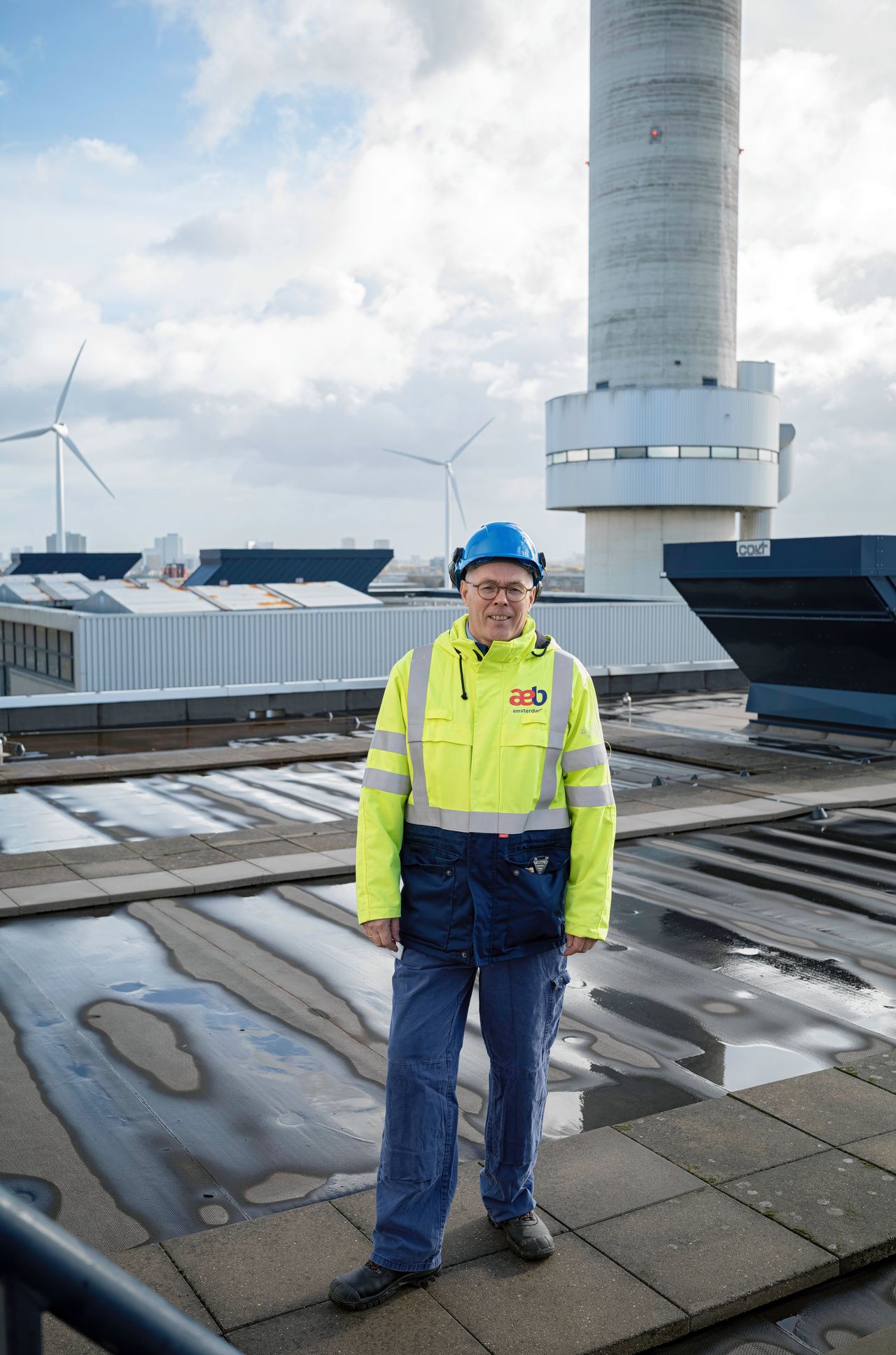 AEB is in de wijde omtrek herkenbaar aan twee grijze schoorstenen. Met hun negentig meter maken ze de afvalverbrander herkenbaar voor de wijde omtrek. Witgrijze damp stroomt continu de schoorstenen uit, vandaag richting Oostzaan in Amsterdam-Noord.