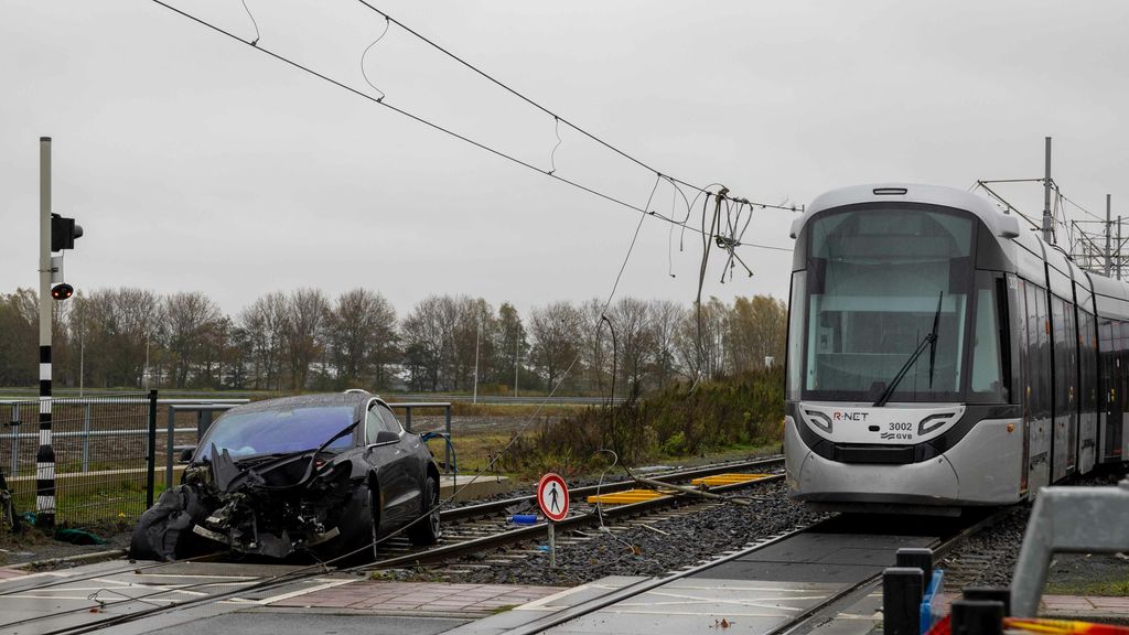 Het ongeluk gebeurde rond 06.00 uur bij de Randweg. De auto reed door de dichte spoorbomen en kwam op het spoor terecht. Een naderende tram botste daarna op de auto. De tram ontspoorde en de bovenleiding brak af. Buurtbewoners hoorden vanochtend een harde knal toen dat gebeurde.