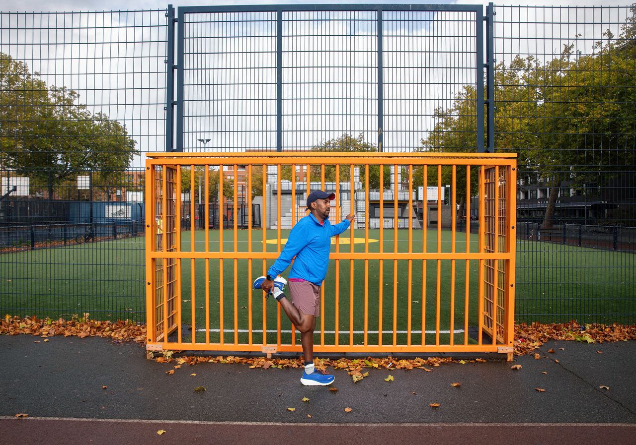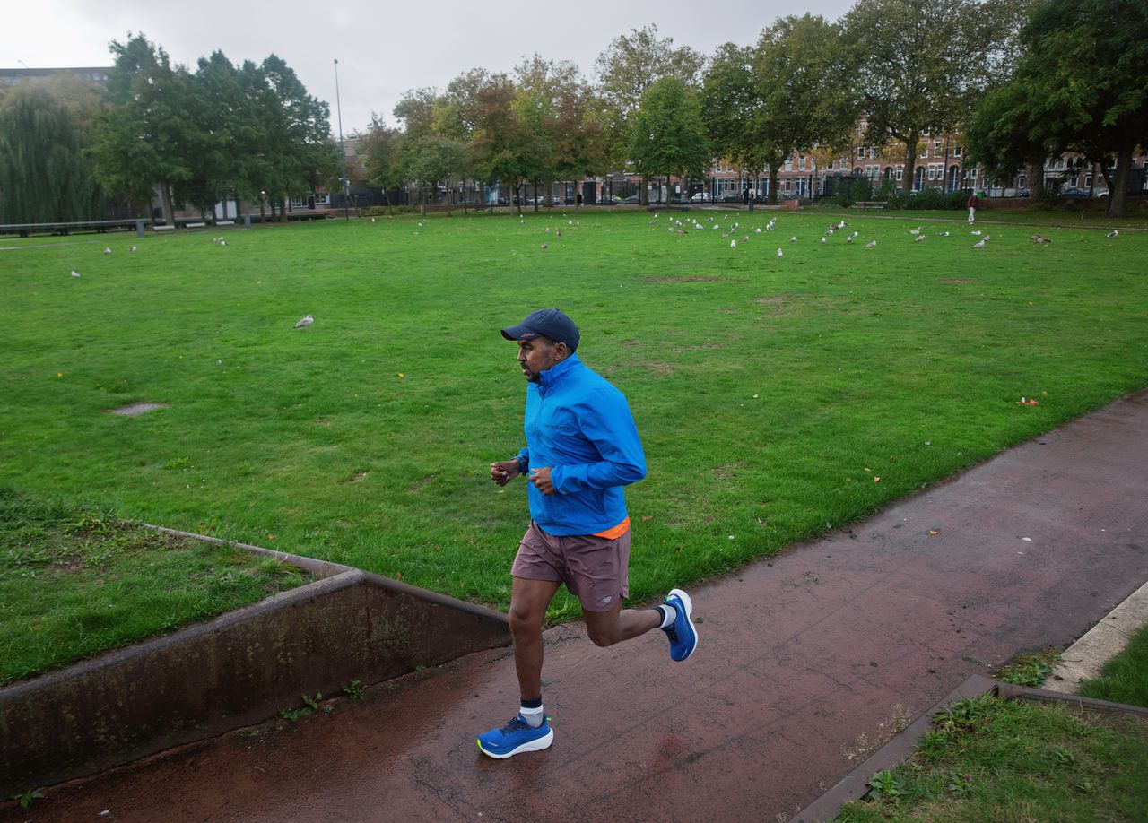 Zelf wist Abdillahi uit het dal te klimmen door te gaan hardlopen. Steeds meer, steeds langer; een nieuwe verslaving. Het gaf hem rust en focus. En nu, dit jaar, holt hij tweewekelijks 42.195 meter lang de longen uit zijn lijf. Gekkenwerk, snapt-ie zelf ook wel. En dat ook nog naast een fulltime baan. Een hele prestatie, maar het levert hem stress op. Hij raakt gehaast, merkt hij. Wíl soms niet eens meer een praatje met passanten maken. Tijd om te herstellen is er amper. Hij moet dóór, om de aandacht voor „de mensen in het donker” vast te houden: dat heeft hij aan zichzelf beloofd. Meer kilometers, meer schijnwerpers, nóg meer kilometers. Meer, meer, meer.