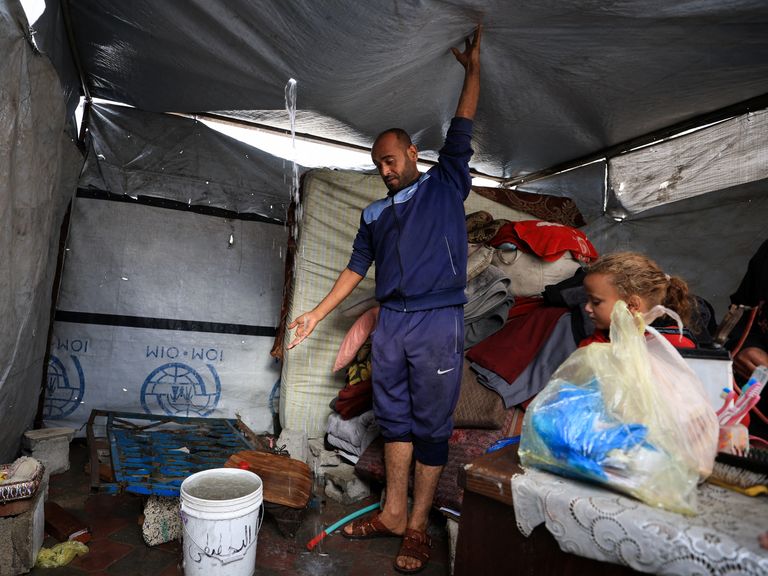 ReutersEen lekkage in een tent in Gaza Stad