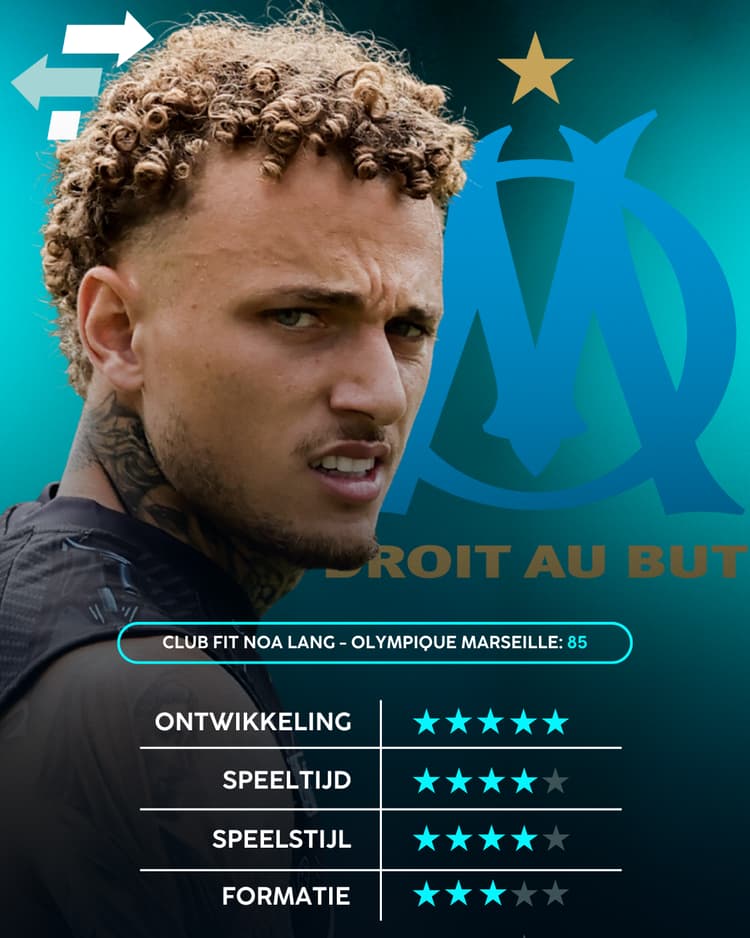 In dat geval lijkt het voor Noa Lang het beste om Italië te verlaten. De buitenspeler blijkt op basis van data van SciSports namelijk het beste te kunnen verkassen naar Frankrijk, waardoor hij na Nederland, België en Italië nog een land op zijn cv kan bijschrijven. Uit de Career Advice Tool blijkt namelijk dat Lang een Club Fit van 85 heeft met Olympique Marseille, waar hij op veel meer speeltijd lijkt te kunnen rekenen.