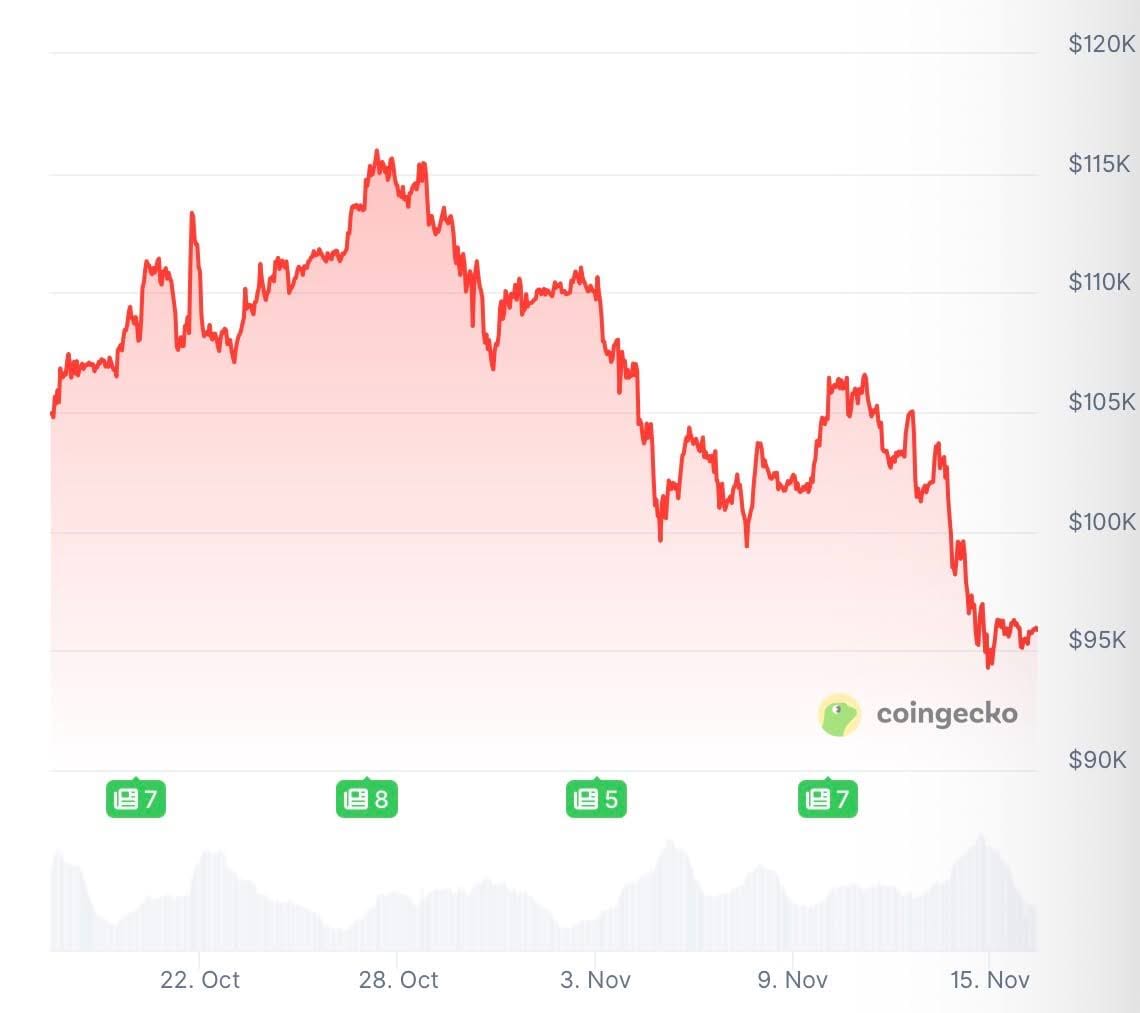 De koers van bitcoin zou wel een positieve stimulans zoals renteverlaging kunnen gebruiken. De munt is een aantal dagen geleden namelijk onder de belangrijke prijs van 100.000 dollar uitgekomen en is op het moment van schrijven 95.856 dollar waard.