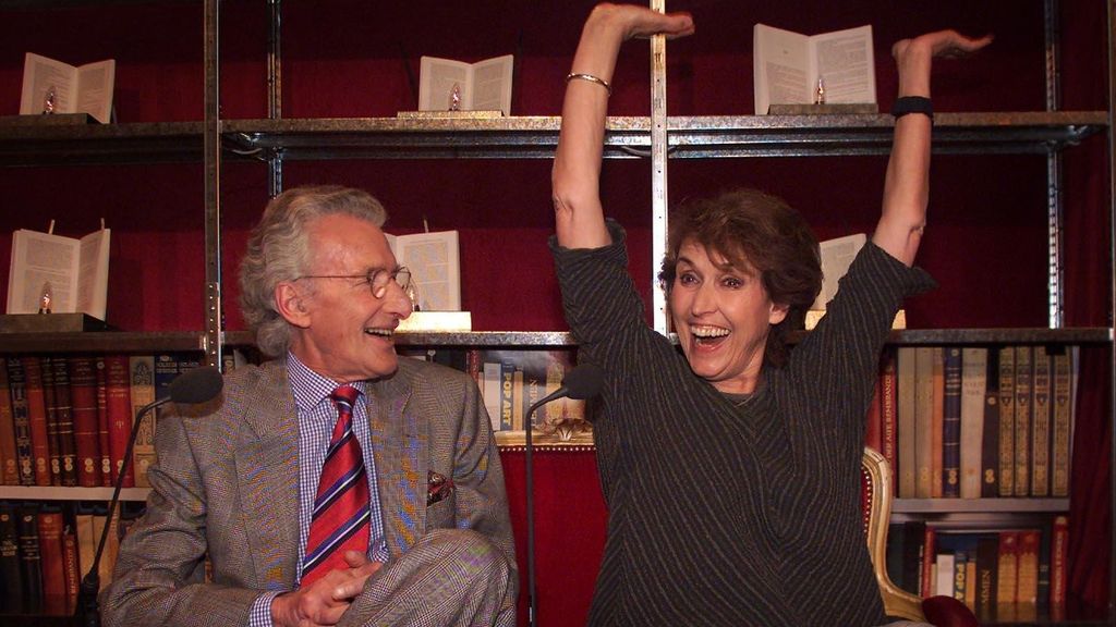 ANPKeuls (m) op haar 75ste verjaardag op de premiere in de Koninklijke Schouwburg in Den Haag van Jan Rap en zijn Maat